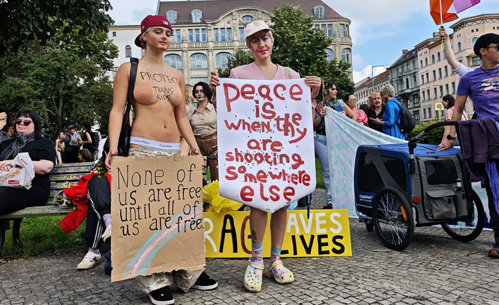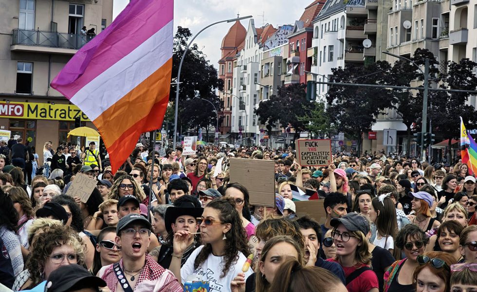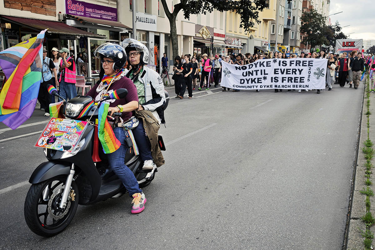 Jedes Jahr zieht am Tag vor dem Berliner CSD der Dyke*March für lesbische Sichtbarkeit durch die Stadt. In diesem Jahr demonstrierten am 25. Juli rund 5.000 Menschen vom Kreuzberger Oranienplatz nach Neukölln über den Hermannplatz Richtung Treptower Park.