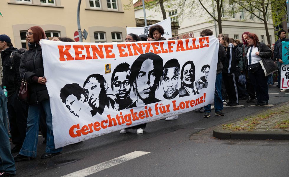 Am 19. April 2026 demonstrierten in Oldenburg rund 2000 Menschen in Gedenken an den 21-jährigen Lorenz A., der vor einem Jahr in Oldenburg von einem Polizisten erschossen wurde. Die Initiative „Gerechtigkeit für Lorenz“ erinnerte auch an weitere Opfer tödlicher Polizeigewalt, Qosay Khalaf, Ibrahima Barry und Mouhamed Lamine Dramé und forderten Aufklärung und Konsequenzen.