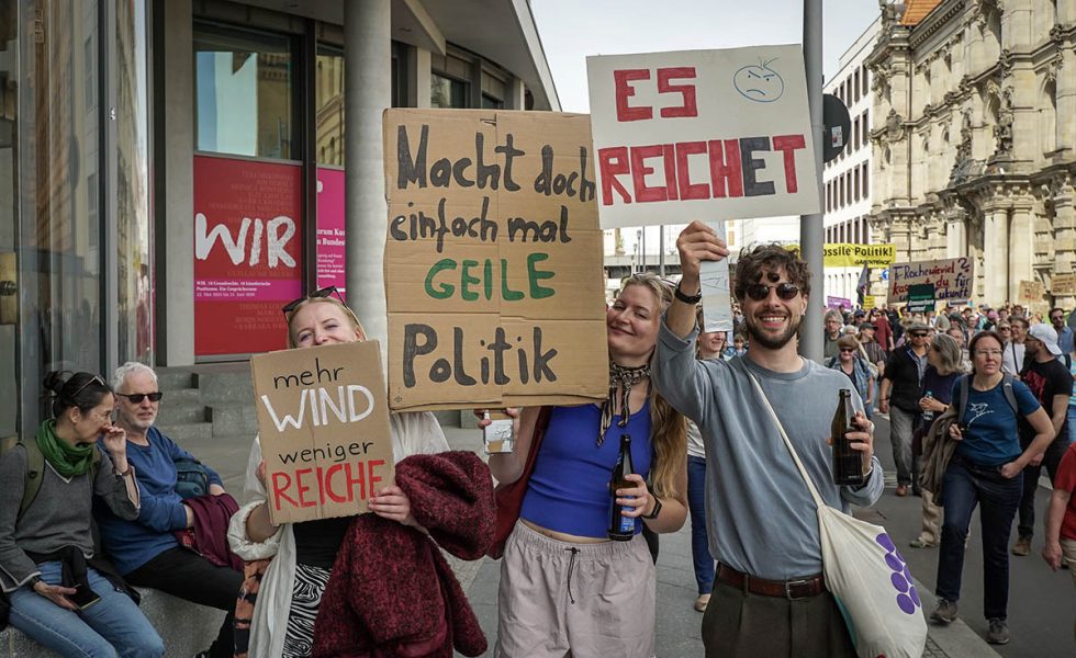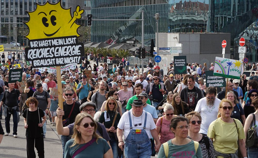 Am 18. April demonstrierten in vier bundesdeutschen Städten an die 80.000 Menschen für die Energiewende und den beschleunigten Ausbau der erneuerbaren Energie aus Wind und Sonne. In Berlin begann die Demo von über 20.000 Teilnehmerinnen am Invalidenpark. Dort ist auch das Energie- und Wirtschaftsministerium von Frau Reiche. Diese CDU-Ministerin glänzte in den letzten Monaten durch eine offene Lobbypolitik für die fossile Industrie und die großen Gaskonzerne wie EON und RWE.