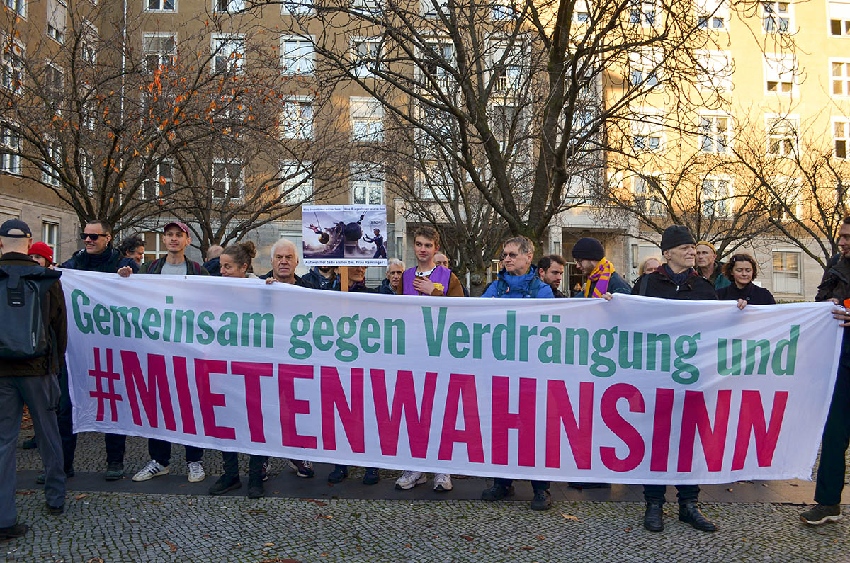 Vor dem Bezirksamt Mitte demonstrierten am 6. November 2025 Be­woh­ne­r*in­nen der Habersaathstraße 40–48 und ihrer Unterstützer*innen gegen Abrisspläne und die massiven Entmietungsversuche des Hauseigentümers. Andreas Pichotta, Geschäftsführer der Immobiliengesellschaft Arcadia Estates, will die Häuser abreißen und an ihrer Stelle Luxuswohnungen bauen. Die Bewohner*innen fordern den Erhalt der Häuser und die Rekommunalisierung. Das Bezirksamt ist bisher weitgehend untätig geblieben.