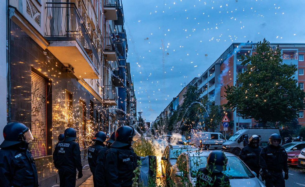 Am 28. August 2025 drang die Polizei gewaltsam in die Rigaer Straße 94 ein und brach in sämtliche Wohnungen ein. Ziel der Aktion war die Registrierung aller Bewohner*innen. Auf Antrag des vermeintlichen Eigentümers Leonid Medved und seiner Briefkastenfirma Lafone Investments Limited hatte das Amtsgericht Tiergarten die Durchsuchungsbeschlüsse in der vergangenen Woche erlassen. Am Abend gab es eine spontane Demonstration gegen die Razzia und die drohende Räumung des Hauses. Die Polizei hielt die Demo mehrfach auf. In der Rigaer Straße wurden von einem Haus Feuerwerk verschossen und die Polizei nutzte dies als Begründung, um die Demo mehr als 30 Minuten aufzuhalten, am Ende umzuleiten und nicht vor die Rigaer 94 ziehen zu lassen.