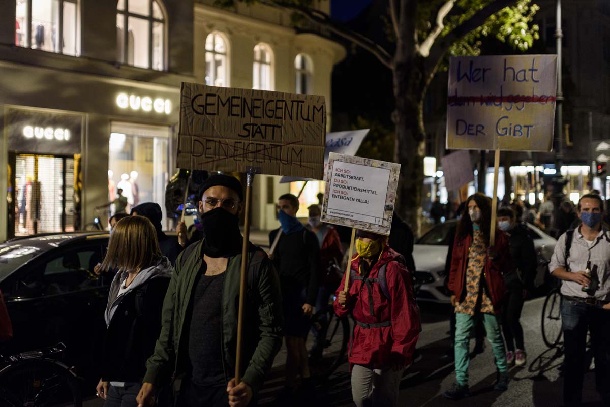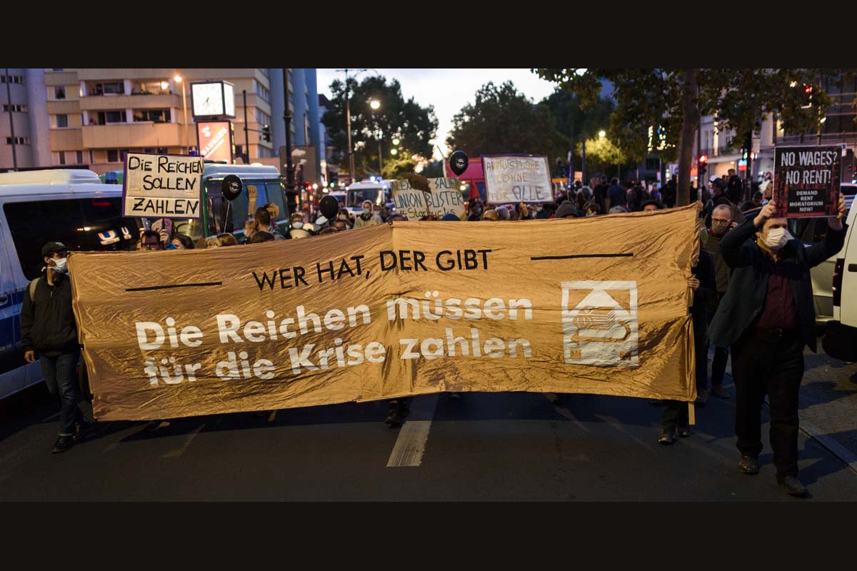 „Wer hat, der gibt – Die Reichen müssen für die Krise zahlen!“ Unter diesem Motto fand am 19. September ein Aktionstag in Hamburg, Berlin, Hannover und weiteren Städten statt. In Berlin zogen am Samstagabend mehrere hundert Menschen, begleitet von einem großen Polizeiaufgebot durch die City-West vom Adenauerplatz über den Kurfürstendamm bis zum Wittenbergplatz.